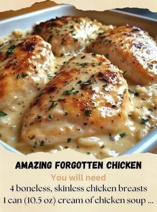 The amazing forgotten chicken recipe is a classic dish that has been passed down through many different families for a very long time because it is one of the easiest meals you can ever make in your own kitchen. This recipe is all about simplicity and comfort because it involves putting a few basic ingredients into a baking dish and then letting the oven do all the hard work while you go about your busy day. The reason it is called forgotten chicken is because once you put it in the oven you can literally forget about it for a few hours while it cooks slowly and perfectly on its own. It is a wonderful way to create a hearty and warm meal that tastes like it took hours of preparation when it actually only took about five minutes of your time to get it ready. Many people find that this dish is a lifesaver on days when they are tired or when they have a million other things to do but still want to serve a real homemade dinner to their loved ones. It uses very common pantry items like rice and canned soup and chicken pieces which means you likely already have everything you need sitting in your cupboards right now. This recipe represents the best of home cooking because it turns simple things into a delicious and creamy feast that makes the whole house smell like a cozy dream.