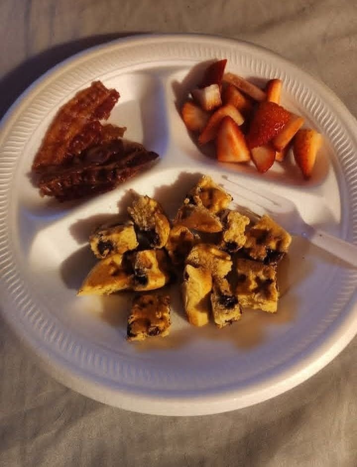 “Breakfast Plate with Blueberry Waffles and Bacon”